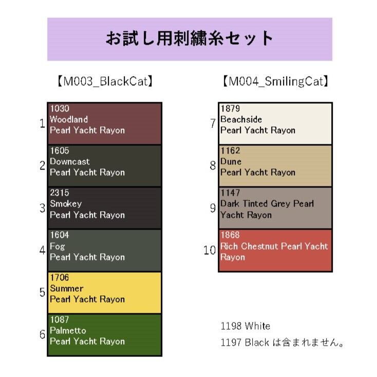 お試し用の刺繍データ2種類と、コイトネコが使用している刺繍糸のセットです。